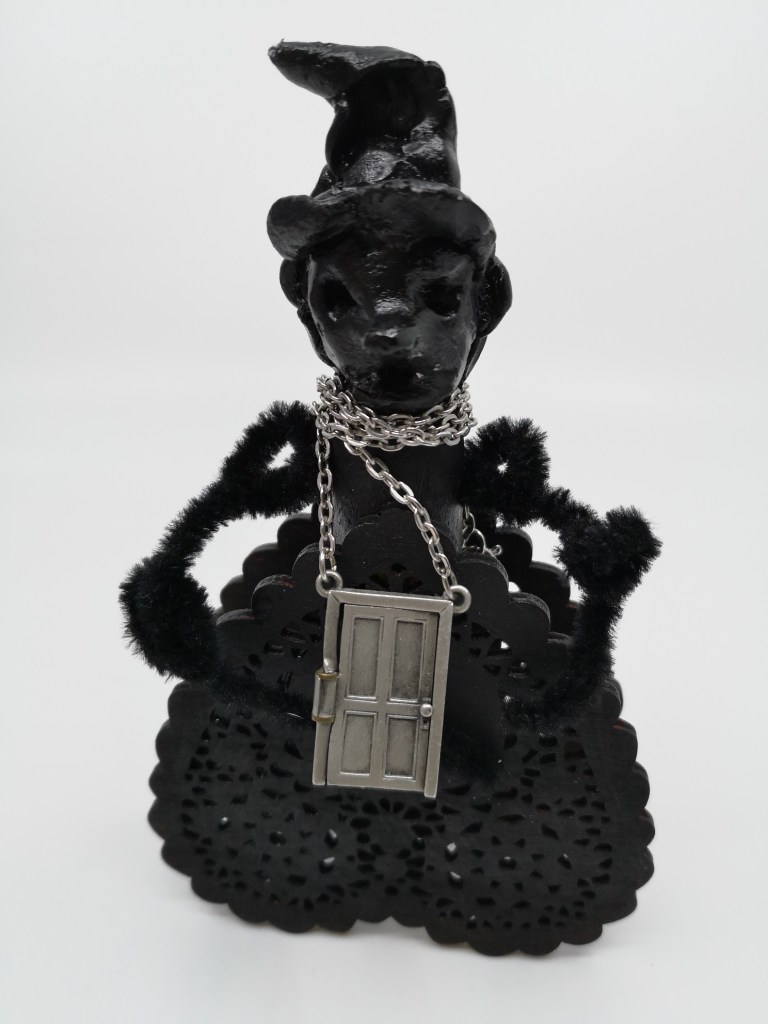 To the doll club members, this witch is not finished yet.. and no, the little door will not be part of her outfit. Just saying.
