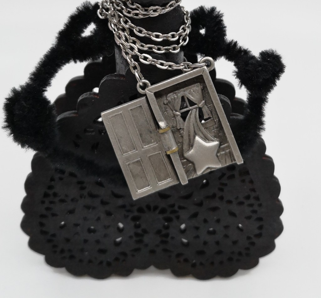 Here is my attempt at showing you this door, it is pewter, and it opens, I am wondering if it will go with the pewter door I showed you earlier that was a brooch.