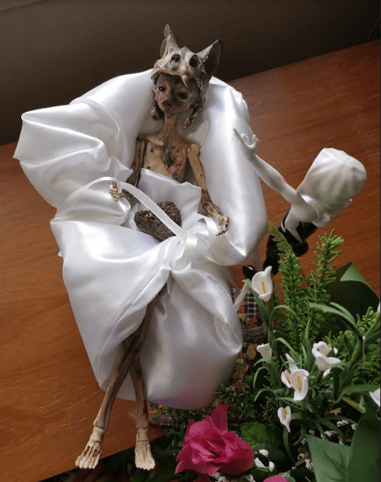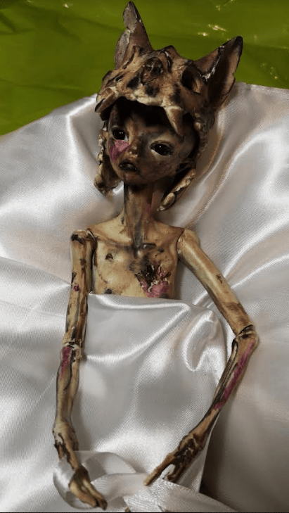 omydeargod, that’s too Goth even for ME, girl! !!! Did you put the skull on her head, or did she come with it? Now I want to know more.