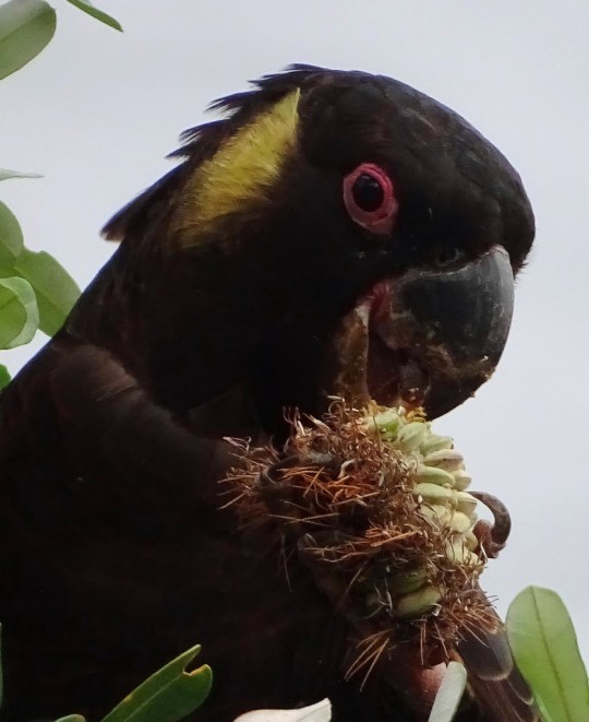 I had seen Yellow Tailed Black Cockatoos here eleven years ago, but was packing my suitcase, resigned to not having a repeat experience, when I spied this one out my window.