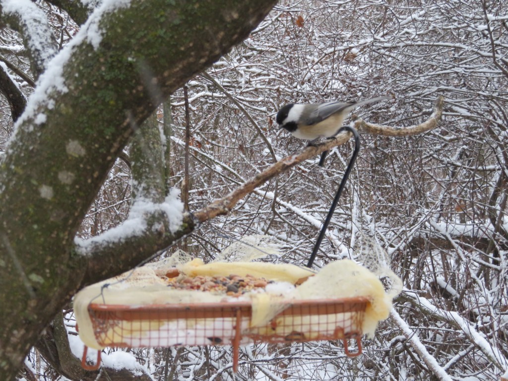 With snow overnight and into the morning, some of the feeders had to cleared of snow, but all in all, there was a happy chirping and flurry of activity as everyone waited for a place at one of the feeders.