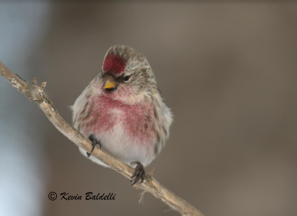 I have Kevin Baldelli to thank for patiently standing in the cold for hours today to get this picture. He is a gem! I first saw this bird the other day, I was told that she was a hoary red poll by a birder who was at the site when I caught a glimpse of this bird. She was alone, and stood out from the other birds at the feeders. Kevin is very efficient, he got this picture and a few others, this is the one I am using today I just was so pleased when I saw it. He also looked the bird up and after careful perusal of the information determined it was a common red poll. I don’t really care about her name (I don’t even know if she is a she, but I am so taken with her, it doesn’t matter. My many thanks to Kevin for this picture and the others he has taken, which I will share with you later. =^_^=