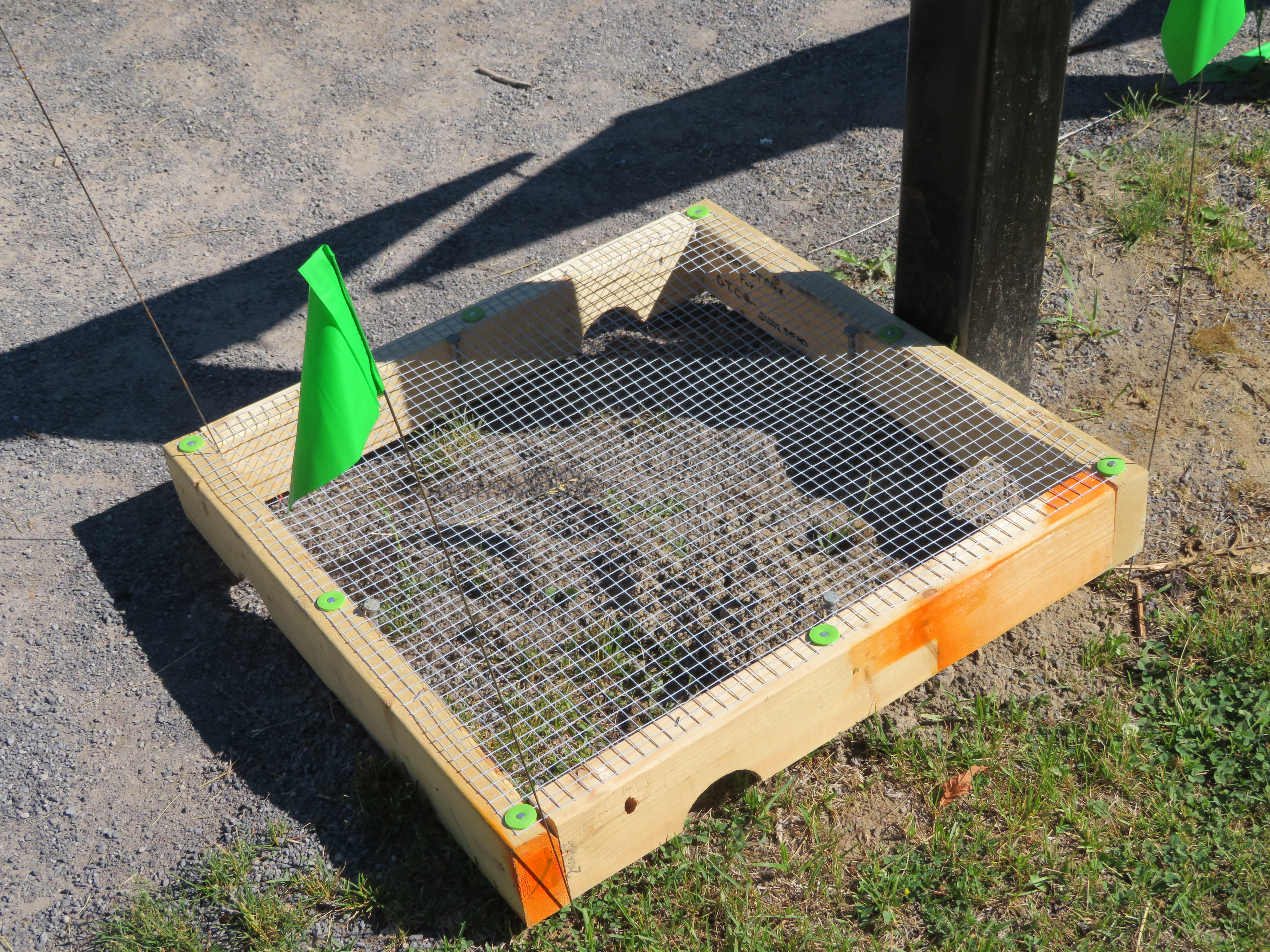 Meet the turtle I met the other day, I have since been told she is a snapping turtle, the mound of earth that she left, has since been protected by I will assume the wild life staff that monitor what is happening in the conservation area. Needless to say I was happy to see that the “nest” has been protected. I had to reposition the green warning flags, but aside from that, her place looks like it has been secured. My next question, is how will she get back to be with her eggs, or does she even care?