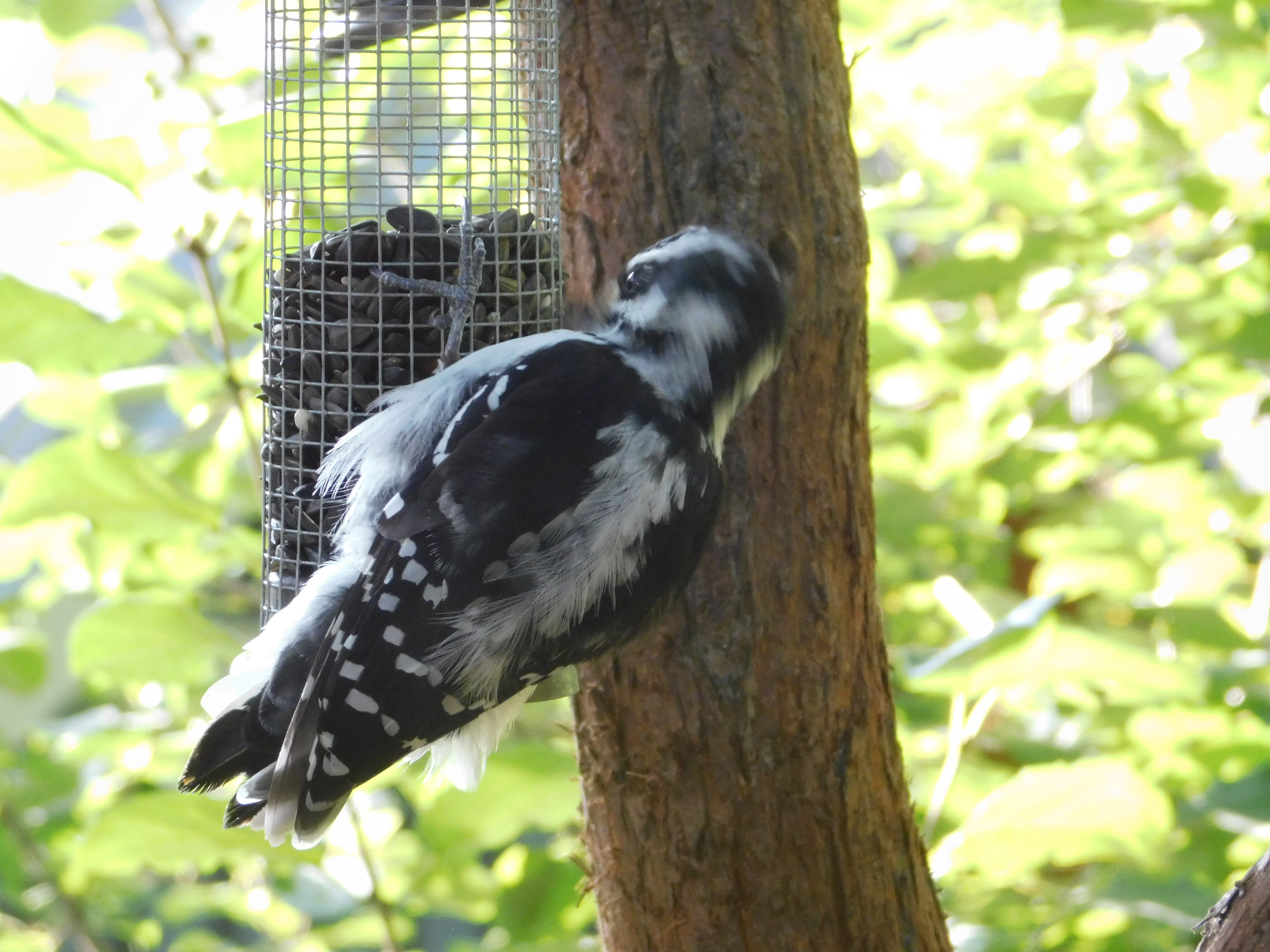My first glimpse of a woodpecker at the feeders. I did my best to be patient, to wait, be ready, but he/she was having none of it.