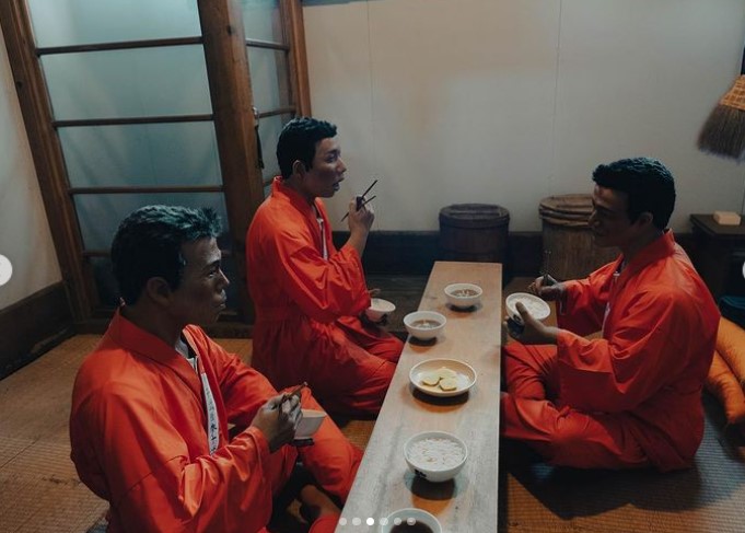 I received a "prison meal" that reproduces the meal that the inmates are eating at the current Abashiri Prison. I felt nostalgic for the plastic tableware, 😭 (not a former prisoner) quote from Nori.
