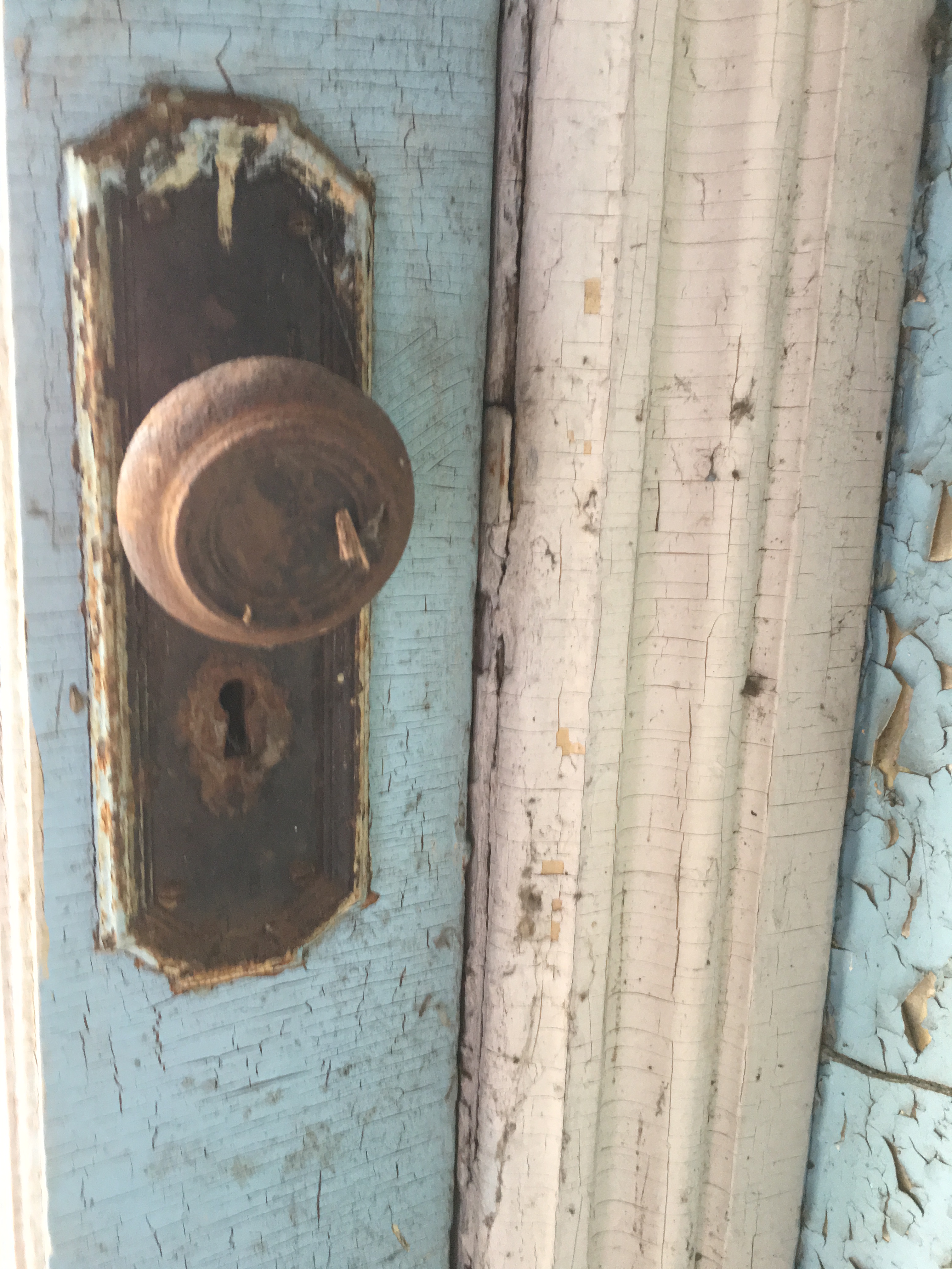 Remember the door knob yesterday.. this is what it was hiding. Now you know why I wear good hiking boots and protective clothing when I explore. Always very careful when entering abandoned buildings