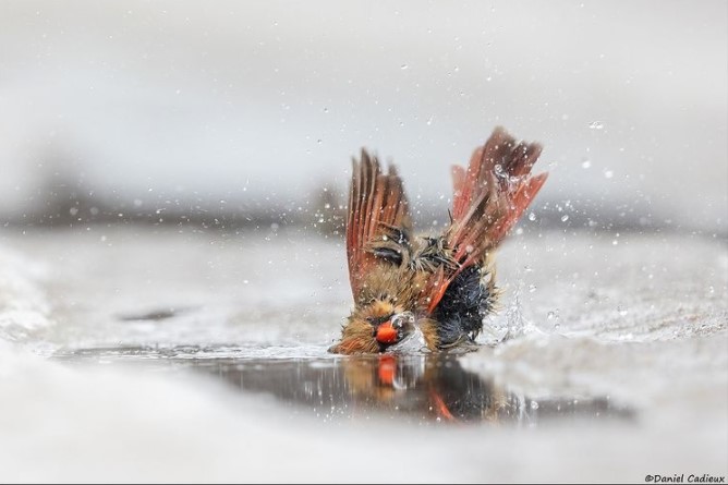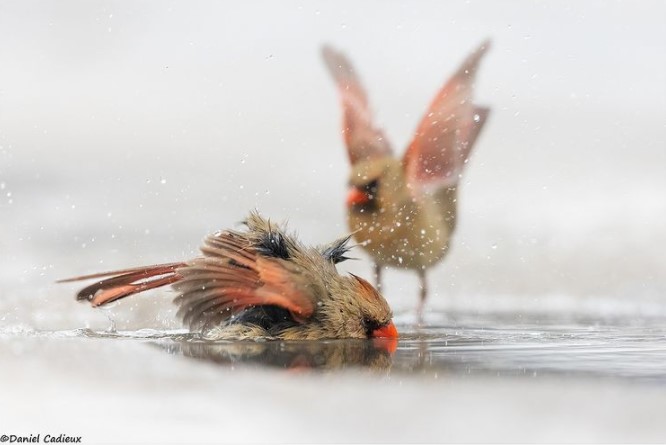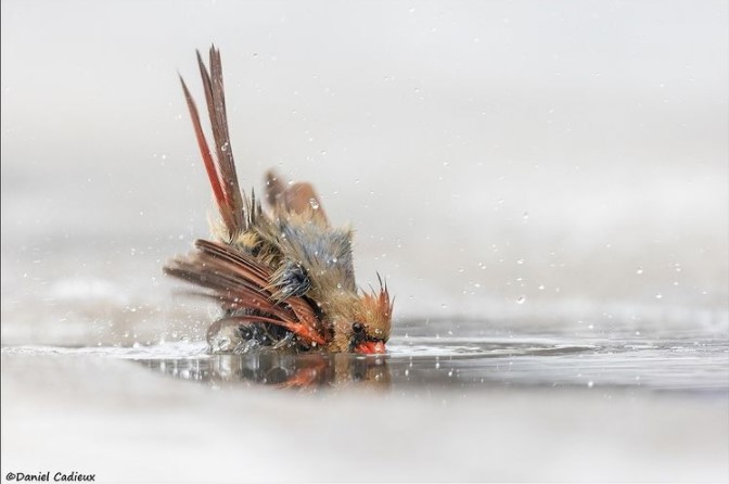 During the winter, when the birds find water they can have fun in.. they have a splash. The Cooper’s Hawk Dan Cadieux https://www.instagram.com/dancadphotography/ found one day wandering in a stream, he apparently stayed to wade for a good hour giving Dan plenty of time to get a few good pictures in.