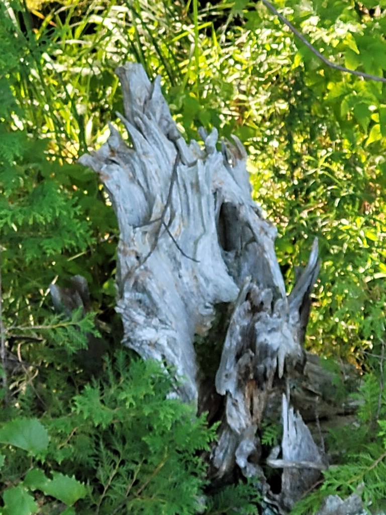 It was at one of the little bays we passed that Bonnie spotted something in the water she thought at first was a swimming turtle, but, in fact it turned out to be a beaver! It helps to have someone with you who is observant and sees things you would not otherwise see. I was focused on finding wood, she an experienced birder was more observant on life above the ground. I was checking out all the dead wood with interesting features.. Made for a pleasant walk, usually I am on my own, so this was a delightful experience for me. Careful Bonnie, I might want to drag you out into the wilderness more often. =^_^=