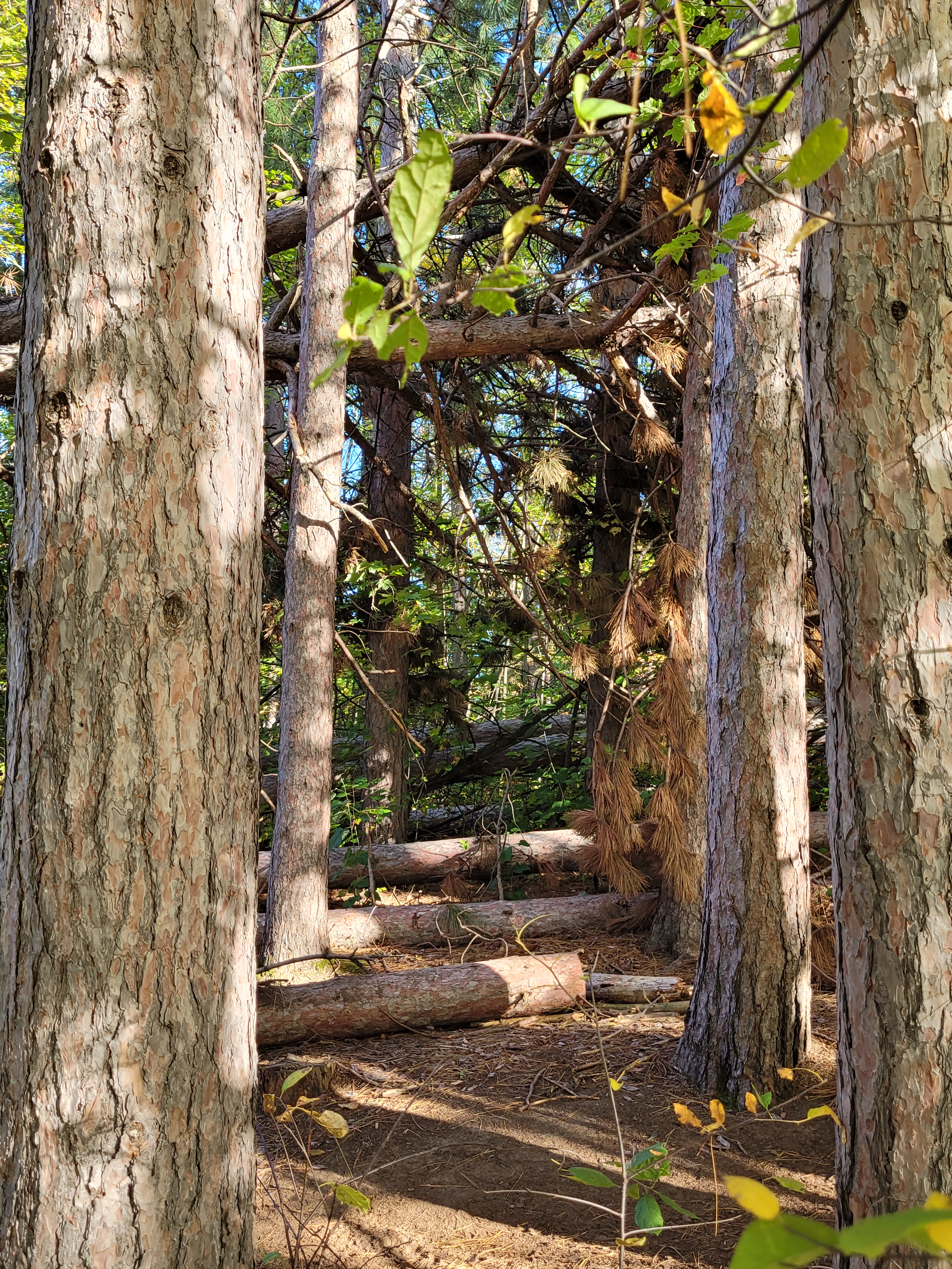 Look beyond the trees over the fallen or felled… walk slowly, move forward