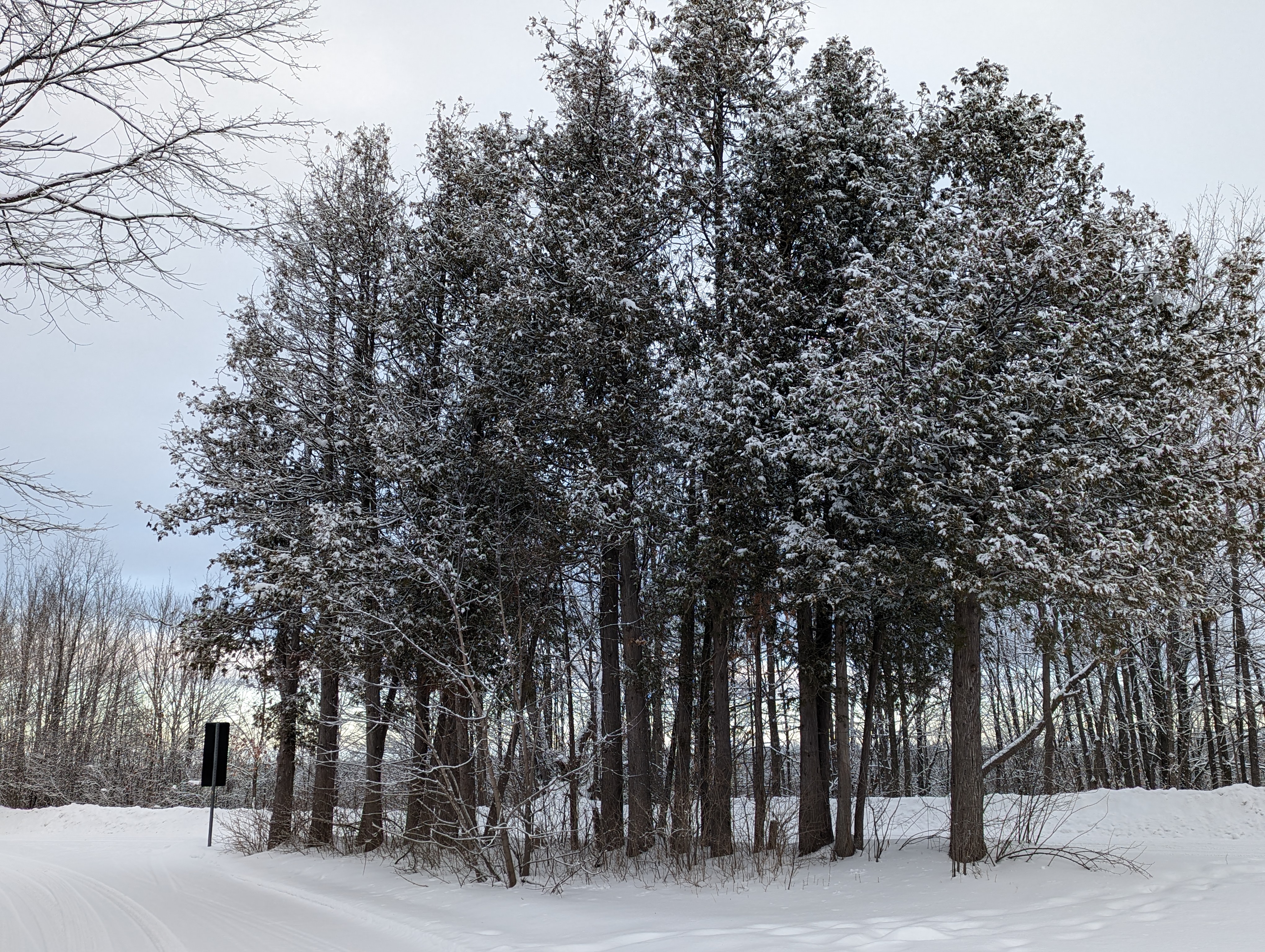 Light snow on pines is irresistible.