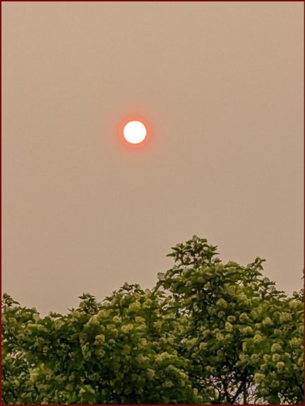 Excessive heat, days of it… We have had wild fires all over the place. Close enough that there have been weather warnings for days now. Yesterday the air was so polluted that Ottawa made the # 1 city for the worst air pollution in a world survey. It was not easy breathing, especially if prone to allergies, or other health problems that affected breathing and lungs. the air quality warning is still in place. Please be careful if you need to go out..