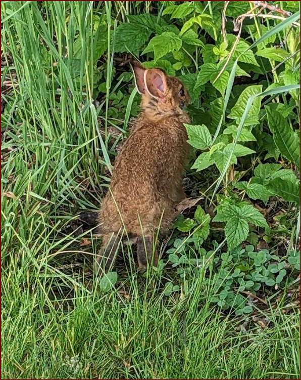 An early morning visit from a rabbit, was fun, it hung around, but it wasn’t going to give me its cute little face. The morning dew was still out, and with the gentle breeze, it was pleasant. Sun is in the forecast for today, should be a good day to finish doing some yard work.