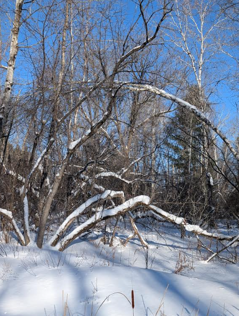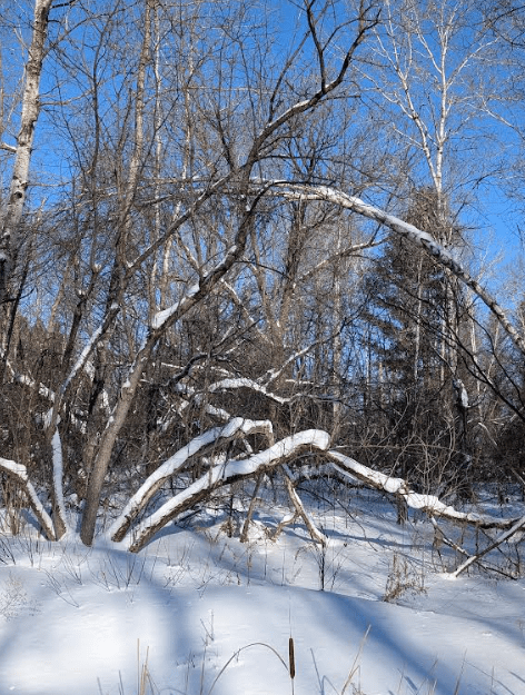 Bitter cold yes… wind chill had it between -38 and -35 depending on who you were listening to on the radio. Did I care.. no… the air was frigid, Time stood still. The birds came to eat, but they were not going to hang around…. I went back to the car to warm my hands before going back to do the suet. I don’t wear gloves, it makes it too awkward to open the suet cages. I brought some lettuce leaves and I had some soya sprouts left over.. I took them further into the bush, closer to a big fallen tree… and half buried it so that rabbit could still find it… I included an offering of rabbit pellet food…. being he/she is wild they may not be interested in the pellets.. but I left them anyway.
