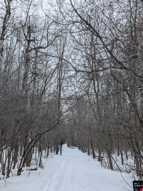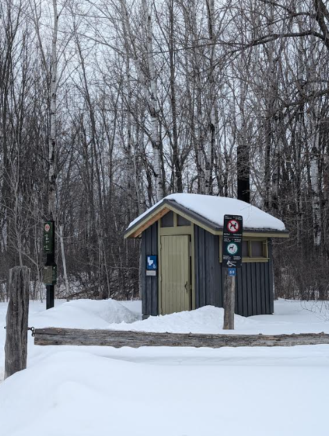 When you tramp though the woods after a snowfall, the air is fresh the day clear, its COLD, cold enough it is keeping most visitors away. I get to be alone in the woods and on the trails, the most welcome sight after tramping through snow and wandering the landscape of sculptured trees and mounds of snow… is the faded yellow door of the small “comfort” station across from the parking lot.