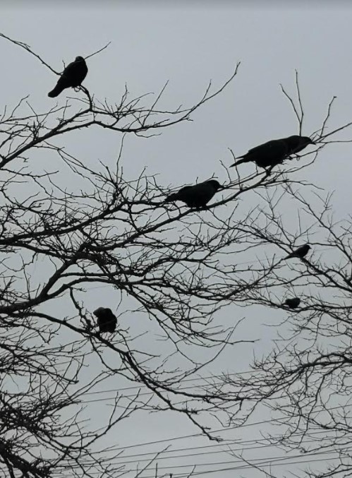 variety of sparrows, doves, juncos, red wing blackbirds, cowbird, you name it, they all dropped in. and lets not forget my ravens who were calling from above. Life is so brilliant when we stop to listen.