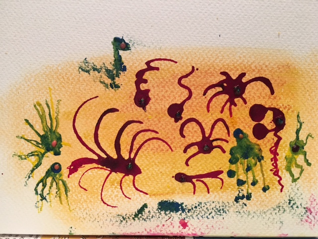 I call these new expressions. storm art … my mind is having a hard time settling down.. the small slivers of wood I’ve gathered from fallen trees I’m combining with acrylic paint to produce dimensional Storm Art expressions.. It is helping me to chill. There are three pieces in the one on the left.. … you can see the others in the second one betterI included shavings in the second one.. I’ll explore and try different methods. you can see the wood chips I’m playing with lying against the base of the small canvas’s. 5×7