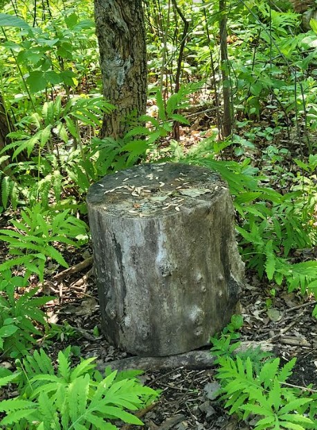 Simple it has a purpose.. I found the other day that in the silent stillness of the forest (it is still closed off due to possible dangers of more falling branches/ trees) it was welcoming. It drew me over .. I sat a spell and listend to the gentle sound of a light rain on the world around me…. the buzzing of the skeetos that were checking me out were part of the moment. In the distance I heard a bird or two, but it was otherwise quiet.