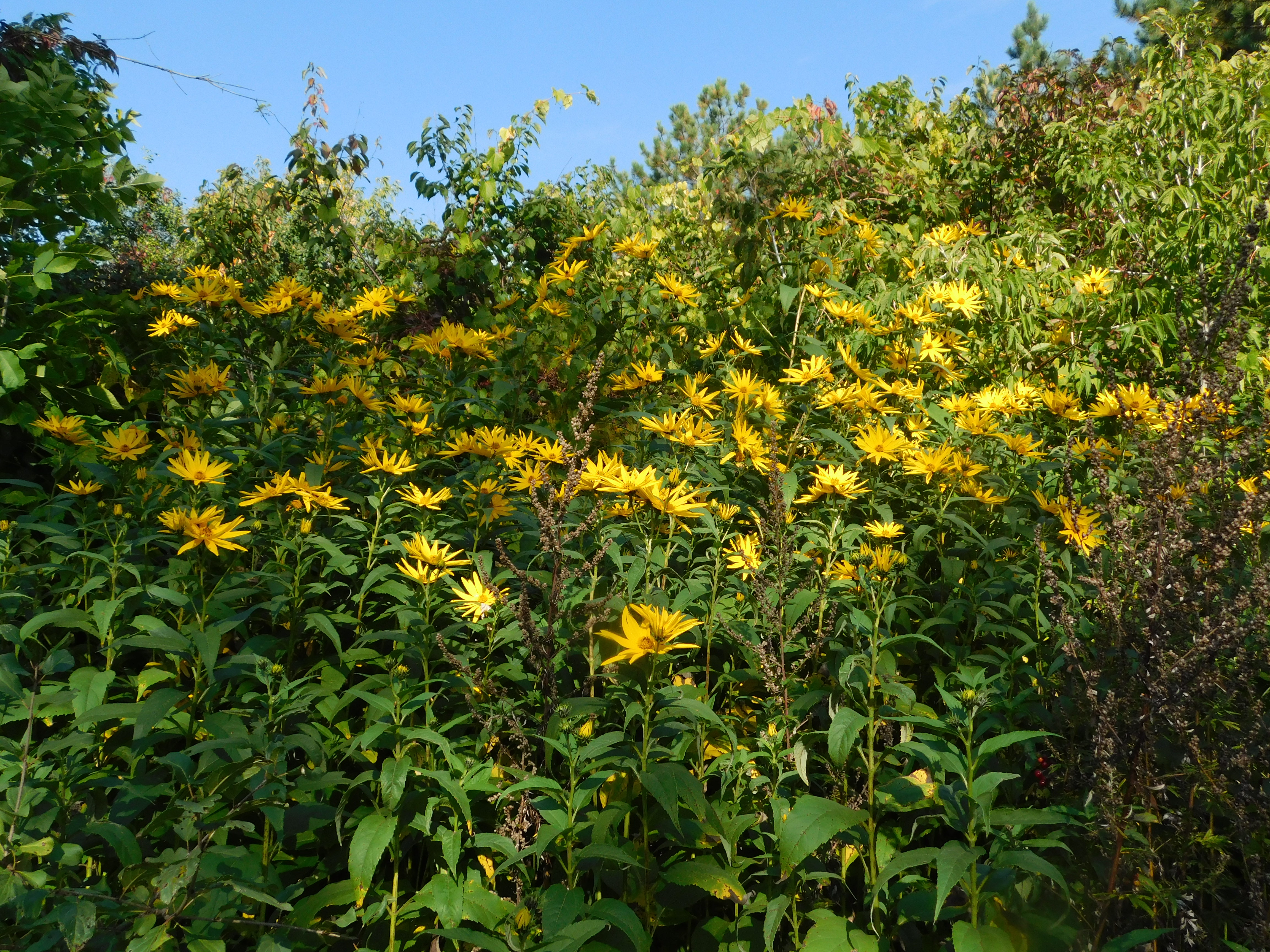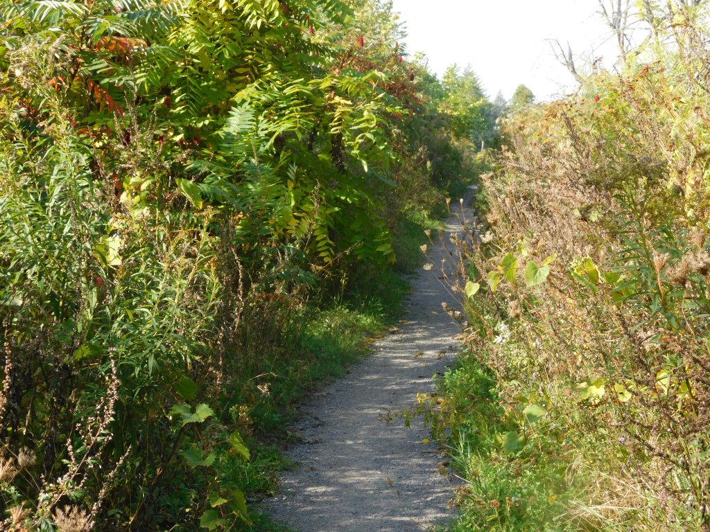 There is a path, in the spring this a favourite area for birders, some of the path is still visible as you can see, now with the summer almost over, there are spots where you have to tread carefully to stay on the path. There were a zillion birds calling and singing in the trees, but don’t ask me what they were, I did look up into the trees and I could see their shapes now and then, but aside from that.. I haven’t a clue.