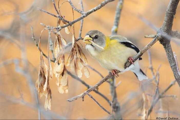 This female Grosbeak is the only one I have personally seen this winter. Last winter we had so many of her “family /relatives” it was an amazing winter to spend time with them and watch their antics. This year she has been on her own. Thank you Daniel for this wonderful picture of her. Your patience was rewarded, and I’m delighted to be able to show her off to our readers.