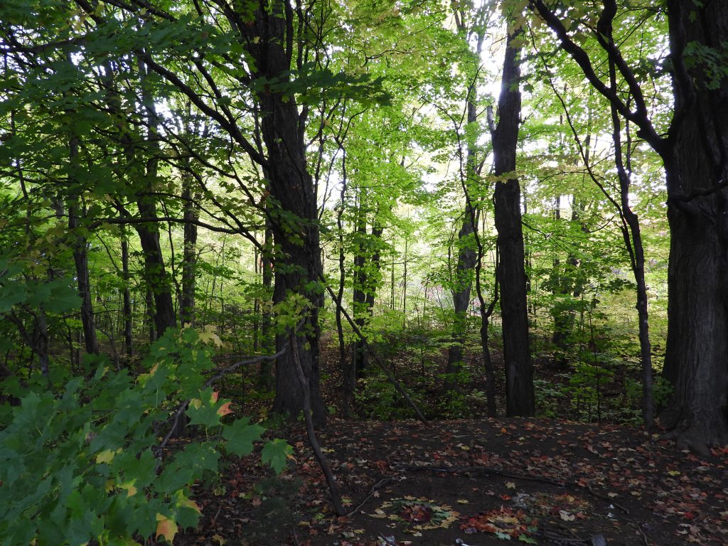 The leaves are gone now, but yesterday was spent touring one of the X country ski trails that doe a loop near where I have the bird feeders. This is done to check for big roots that could be dangerous on the trail, hanging branches that are too close to where people will be skiing/walking/running… trees that are leaning over and could prove to be dangerous should they topple.
