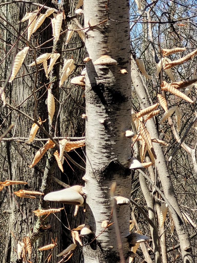 Finding my way through bramble, brush,& fallen trees, was a challenge I gave myself today See the small opening, once the vegetation gets going, this is barely visible. I thought I could follow the animal trails and explore beyond the initial growth. forgetting that the animals using the trails are on all fours and much shorter than my human 5.3″ frame. I had to push aside the branches with thorns and duck under the bigger branches that wouldn’t push aside.. Curiosity drove me forward.