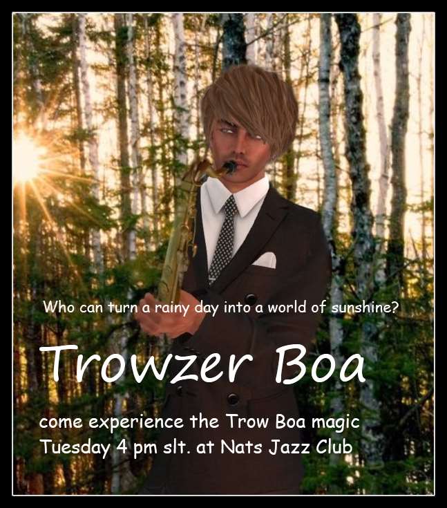 April 7 th. Thursday – Trow will kick off JazzTrax evening with his amazing repertoire of Jazz Tunes. Where .. The Warehouse of course http://maps.secondlife.com/secondlife/xFire/213/189/1201