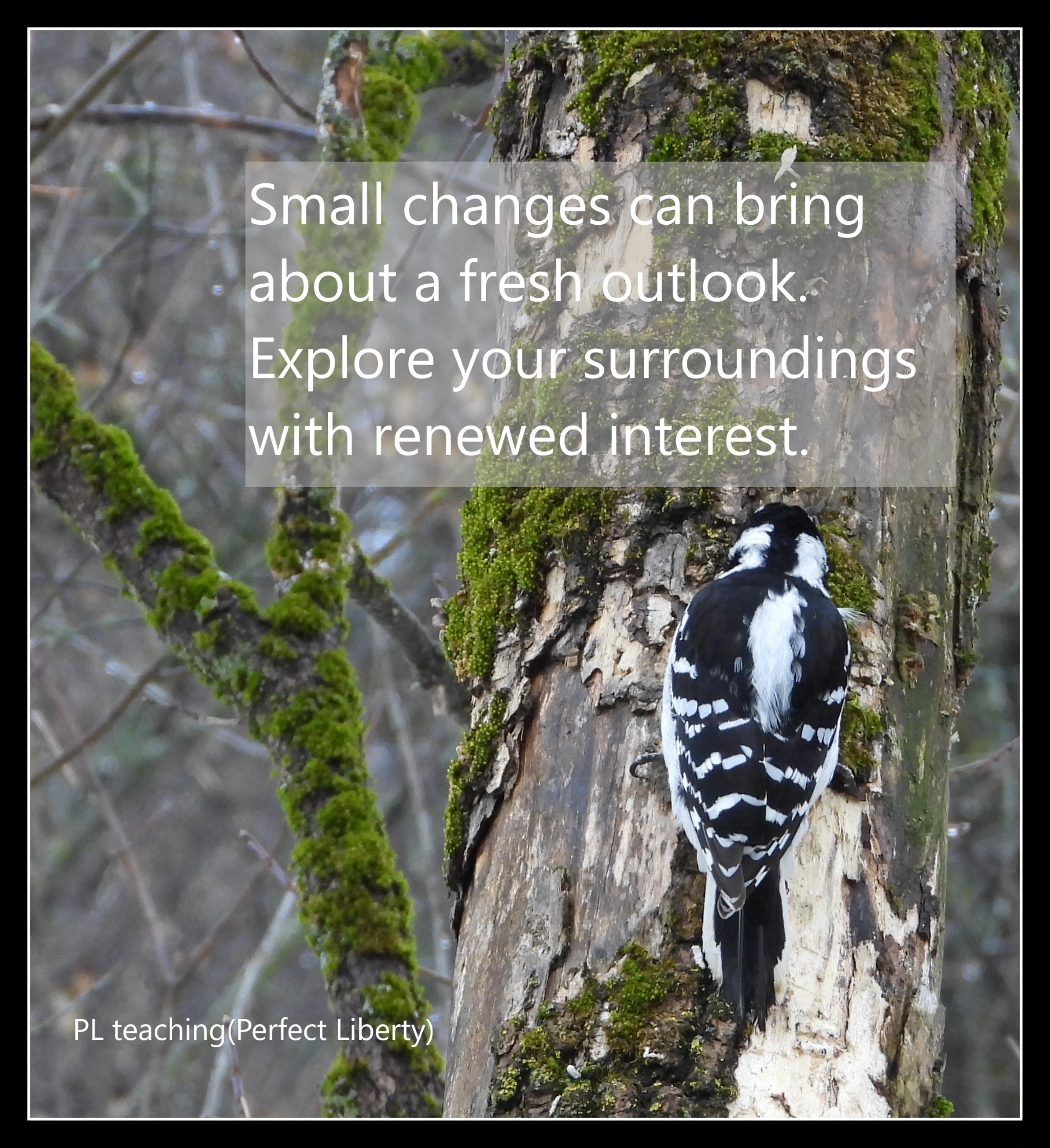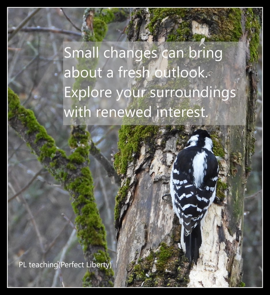 When I’m in the woodland… some days I simply tend and fill the feeders.. and leave.. other days, I’m drawn to stand still, or sit where I am and let the environment speak to me. I take in the decaying vegetation, the fallen branches, the sounds and the scents… I simply stop moving, close my eyes to regroup, then with my eyes closed the sounds become music, the breeze/wind becomes an instrument harmonizing with the chatter of the squirrels/chipmunks and the social greetings of the birds. I am re-energized.
