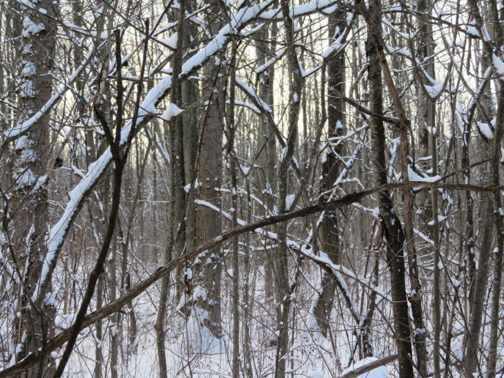 There was nary a leaf on the trees, nor was there anything on the ground but snow and ice. It was a beautiful day, not too cold, bright, sunny, but no green.