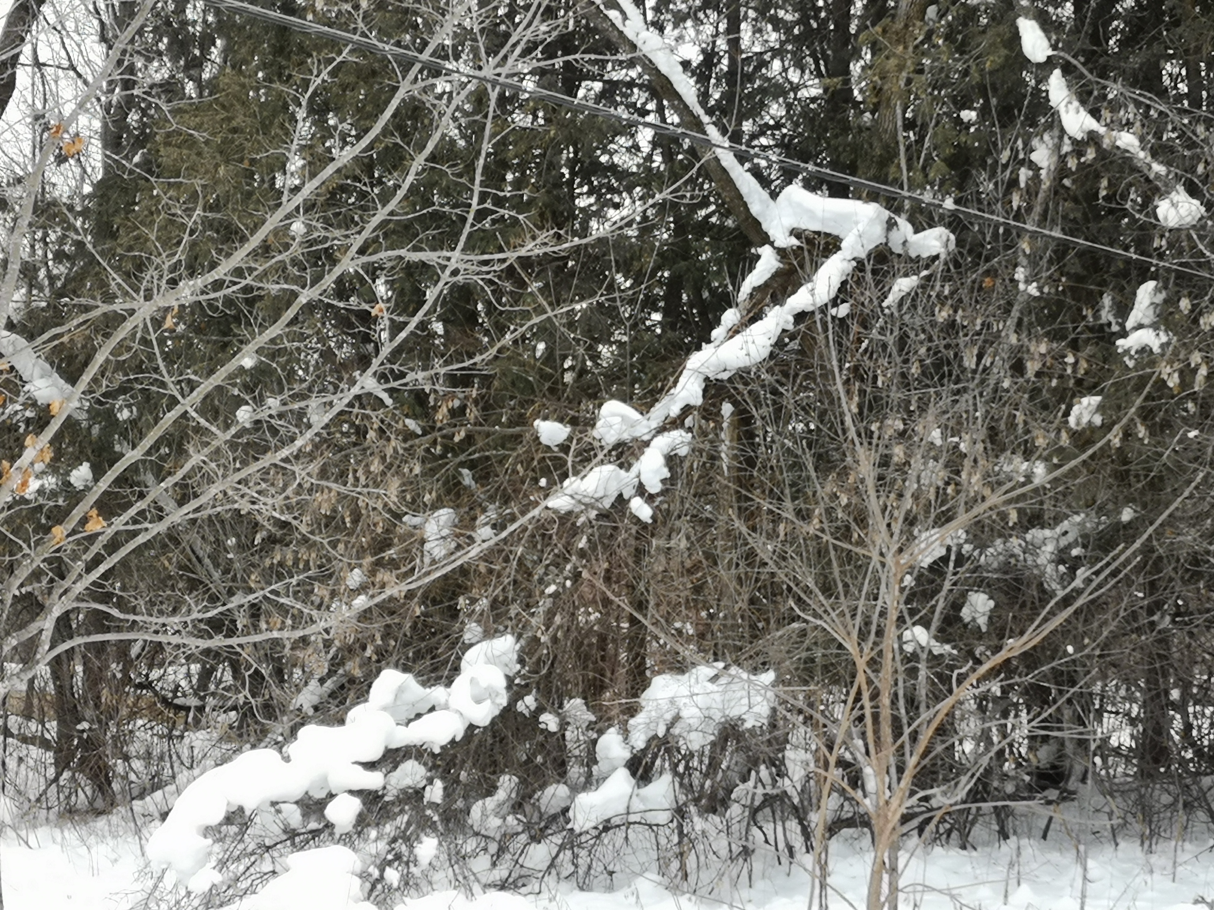 Feel the contrast of emotion, the moment shifts, it changes when you visit the trees covered with snow. Life is full of such moments, one minute we are sailing on high energy, and the next, we can be coasting over rocky ground. either way, we are alive to the changes. In each of these pictures there is a whole world of “wild life” that we are not seeing. I was in smack dab in the middle of the trees in the above picture, what you don’t hear is the chatter of the birds all around me. I had just put out seeds and peanuts, the Blue Jays were cawing and calling, the smaller birds were chirping, woodpeckers were pecking… it was busy.