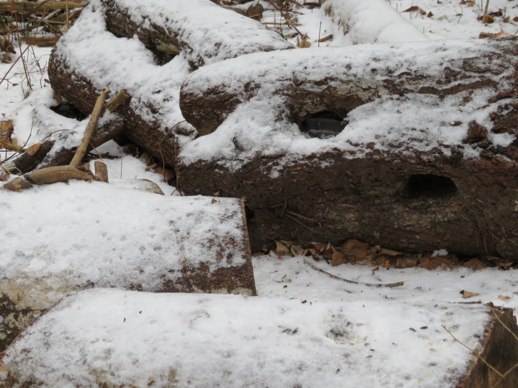Everywhere, under, in and around the trees, branches, rocks, there was a variety of birds.. and squirrels, there had to have been a “zillion” of them, grays, beige, rusty, tiny, wee ones, medium size, they were so busy gathering seeds and then running to hide them, they ran across your path, behind you, and unless you actually advanced towards them, you were ignored. People sat on fallen logs, benches like the one above, big boulder rocks strategically placed… human visitors have made small wooden shelters almost like teepees under the protection of big evergreens around the trunks of deciduous trees.
