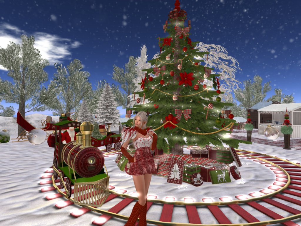 Holiday wishes, magical scenery, toy trains that can be ridden, candy canes and white sparkling snow everywhere. In a virtual world there is no limit to the visual wonders that are presented to us to explore and delight in. The artist has no boundaries.. the weather conditions don’t deter his/her creativity. As a member of the virtual community I and millions of other creative souls get to wander and enjoy all the magic of someone else’s imagination and creative talents. A reminder to one and all…. there is always another human behind the avatar. Be kind, share a smile… especially to new comers who likely are completely baffled by the “world” they are experiencing.